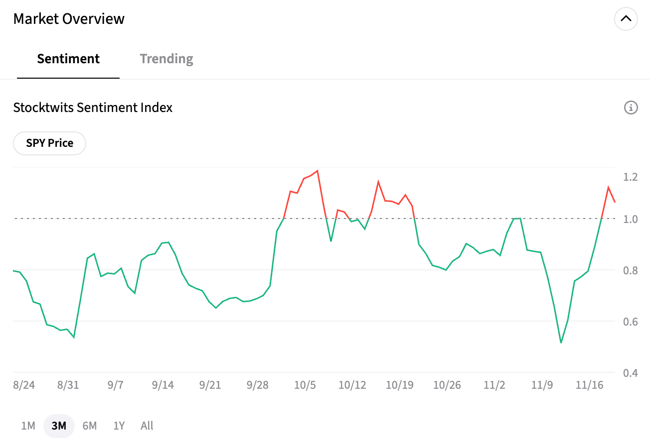 *The ST Sentiment Score & Message Volume scales range from 0 to 100 (extremely bearish to extremely bullish). More info here.