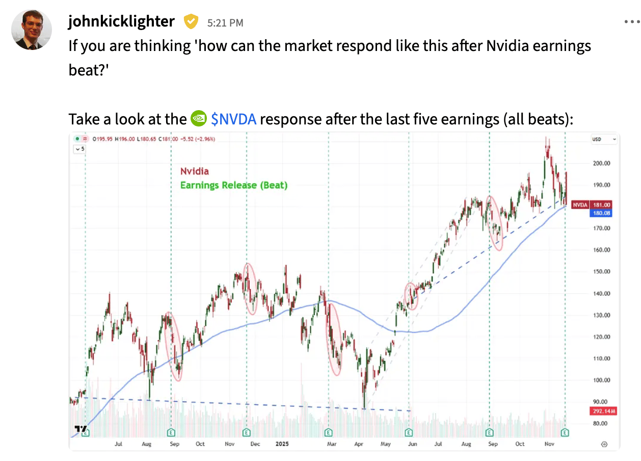 The market was climbing Thursday after Nvidia beat, but by the end of the day the breakout green broke down into red across the board. The Dow fell nearly 1,000 points as traders sold the good news. It was the biggest one-day tech drop, from the highest high to the lowest low, since April’s tariff liberation day.