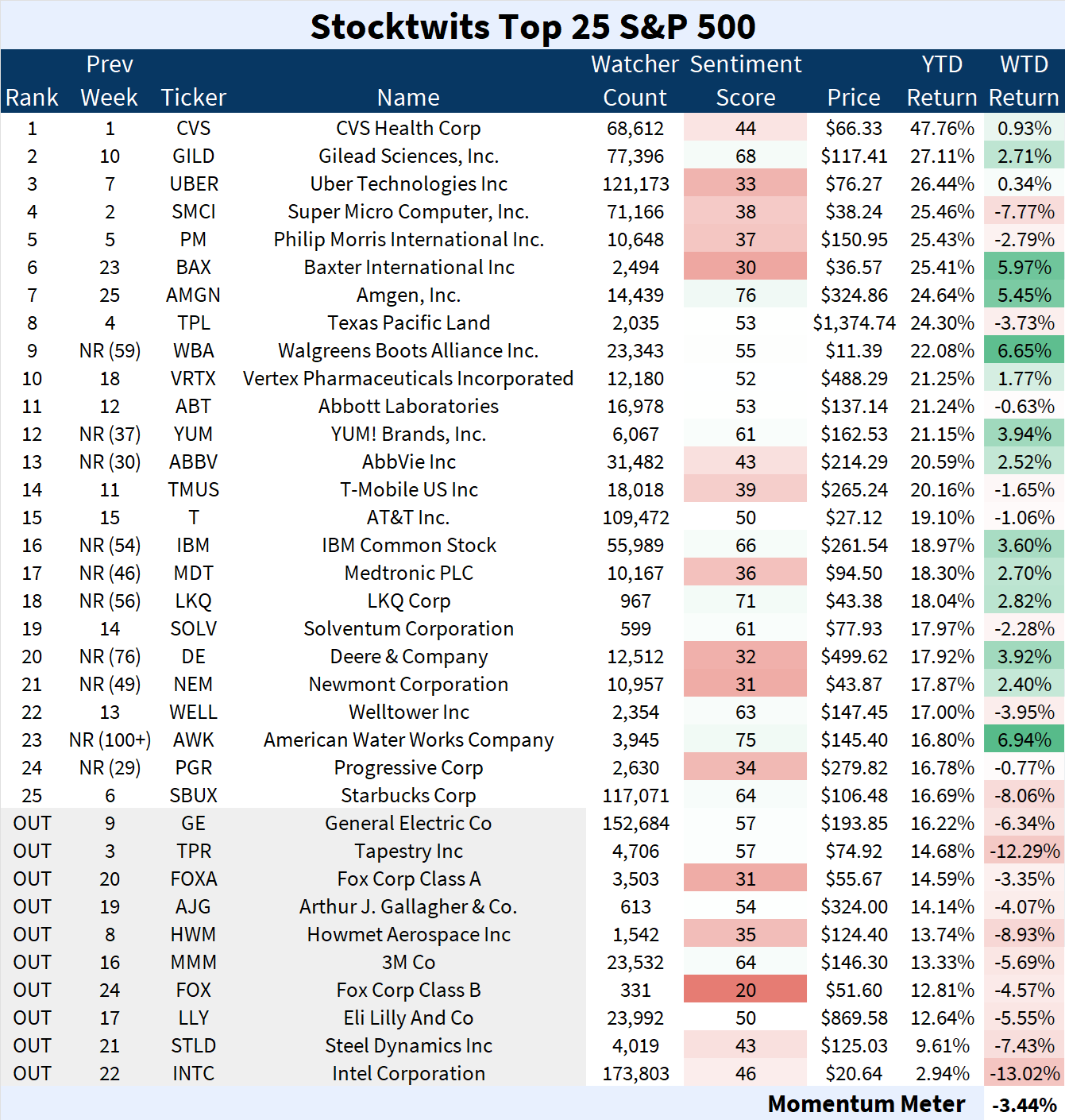 Here are the Stocktwits Top 25 Lists for Week 10: