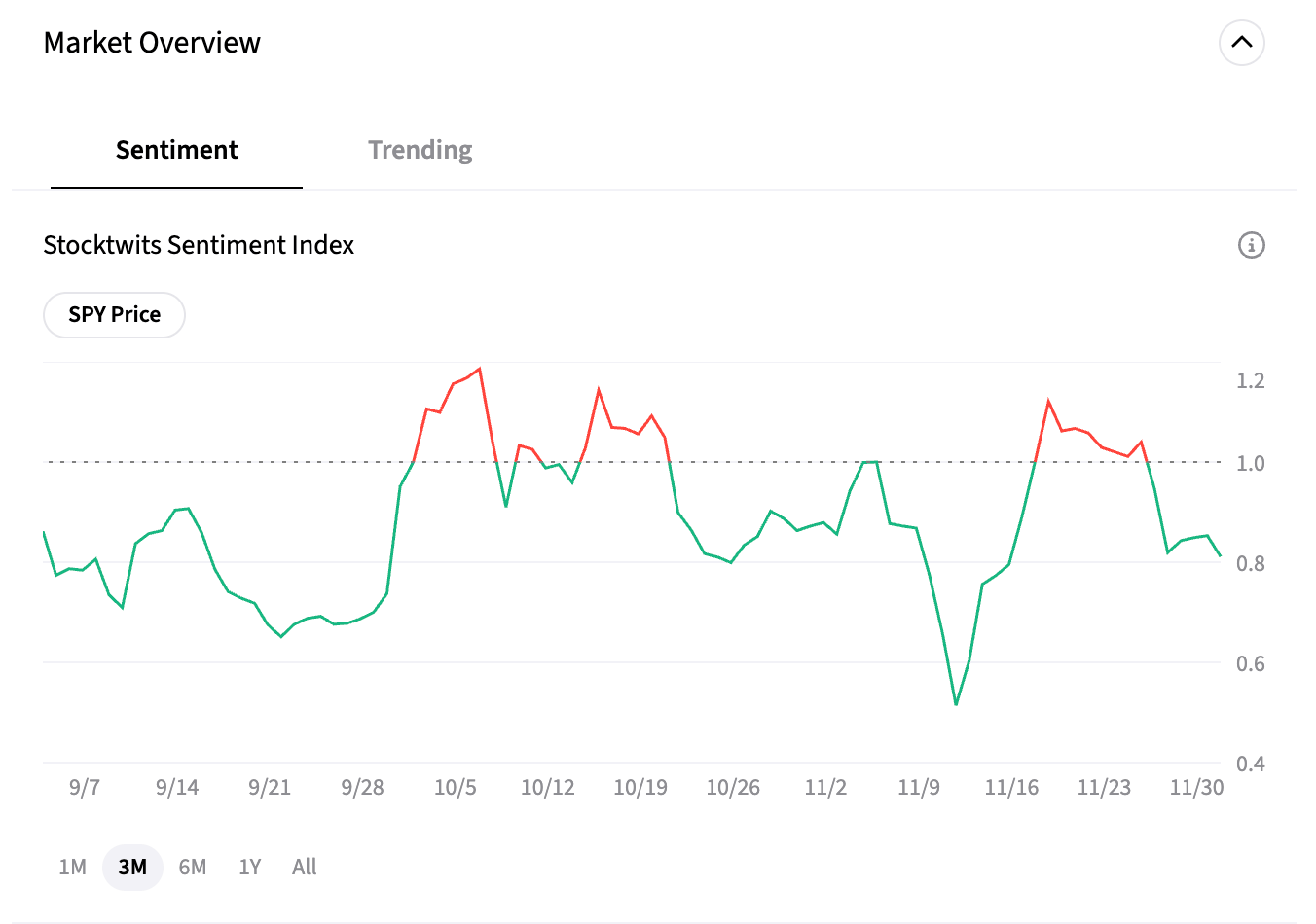 *The ST Sentiment Score & Message Volume scales range from 0 to 100 (extremely bearish to extremely bullish). More info here.