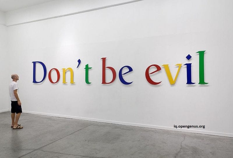 The whole piece is worth reading, to get the angst of this founder. Similar no doubt to the eventual angst felt by the two iconic Google founders years after they penned their ‘Don’t Be Evil’ credo for Google in the original 2004 IPO filing.
