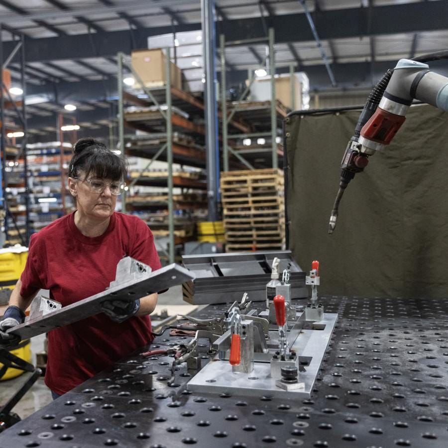 “When he bought Raymath in 2019, this maker of food-grade machines, earthmover parts, data-center server cabinets and more was nearly four decades old and had almost no automation. Two years later, LeFevre began adding cobots, a kind of lighter, less expensive, easier-to-program industrial robot that’s safe to use around humans. Now he has 13.”