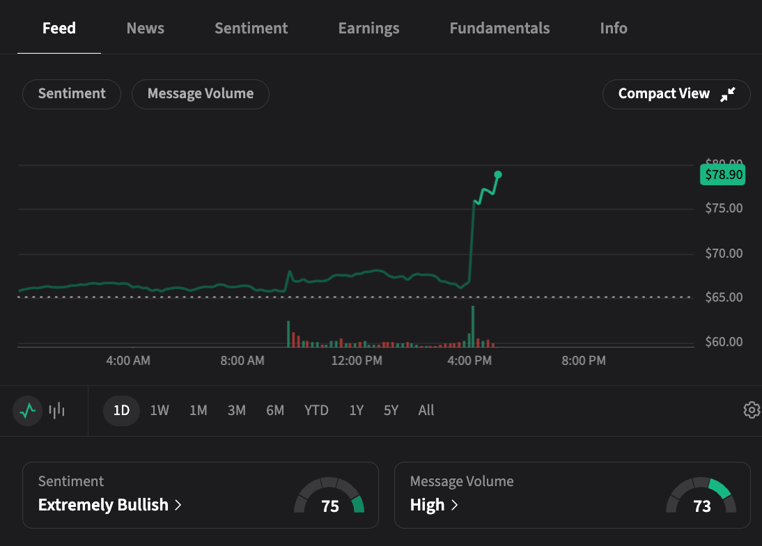 Securities Disclaimer: STOCKTWITS IS NOT A TAX ADVISOR, BROKER, FINANCIAL ADVISOR OR INVESTMENT ADVISOR. THE SERVICE IS NOT INTENDED TO PROVIDE TAX, LEGAL, FINANCIAL OR INVESTMENT ADVICE, AND NOTHING ON THE SERVICE SHOULD BE CONSTRUED AS AN OFFER TO SELL, A SOLICITATION OF AN OFFER TO BUY, OR A RECOMMENDATION FOR ANY SECURITY. Trading in such securities can result in immediate and substantial losses of the capital invested. You should only invest risk capital and not capital required for other purposes. You alone are solely responsible for determining whether any investment, security or strategy, or any other product or service, is appropriate or suitable for you based on your investment objectives and personal and financial situation. You should also consult an attorney or tax professional regarding your specific legal or tax situation. The content is to be used for informational and entertainment purposes only and the service does not provide investment advice for any individual. Stocktwits, its affiliates and partners specifically disclaim any and all liability or loss arising out of any action taken in reliance on content, including but not limited to market value or other loss on the sale or purchase of any company, property, product, service, security, instrument, or any other matter. You understand that an investment in any security is subject to a number of risks and that discussions of any security published on the Service will not contain a list or description of relevant risk factors. In addition, please note that some of the stocks about which content is published on the service have a low market capitalization and/or insufficient public float. Such stocks are subject to more risk than stocks of larger companies, including greater volatility, lower liquidity and less publicly available information. Read the full terms & conditions here. 🔍