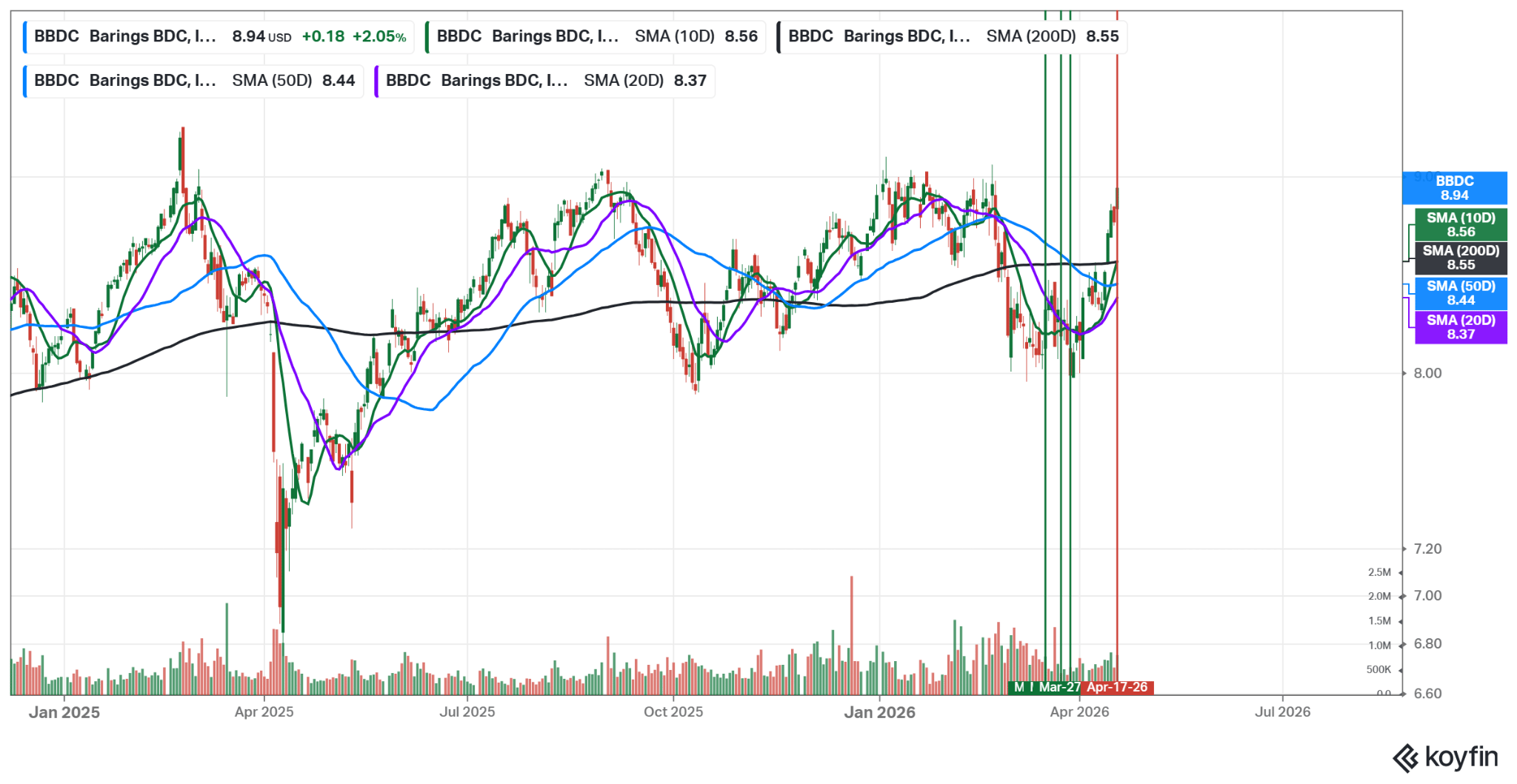 We picked Barings BDC (BBDC) in late March, given their high buybacks and discounted valuations. We exited our position this Friday.
