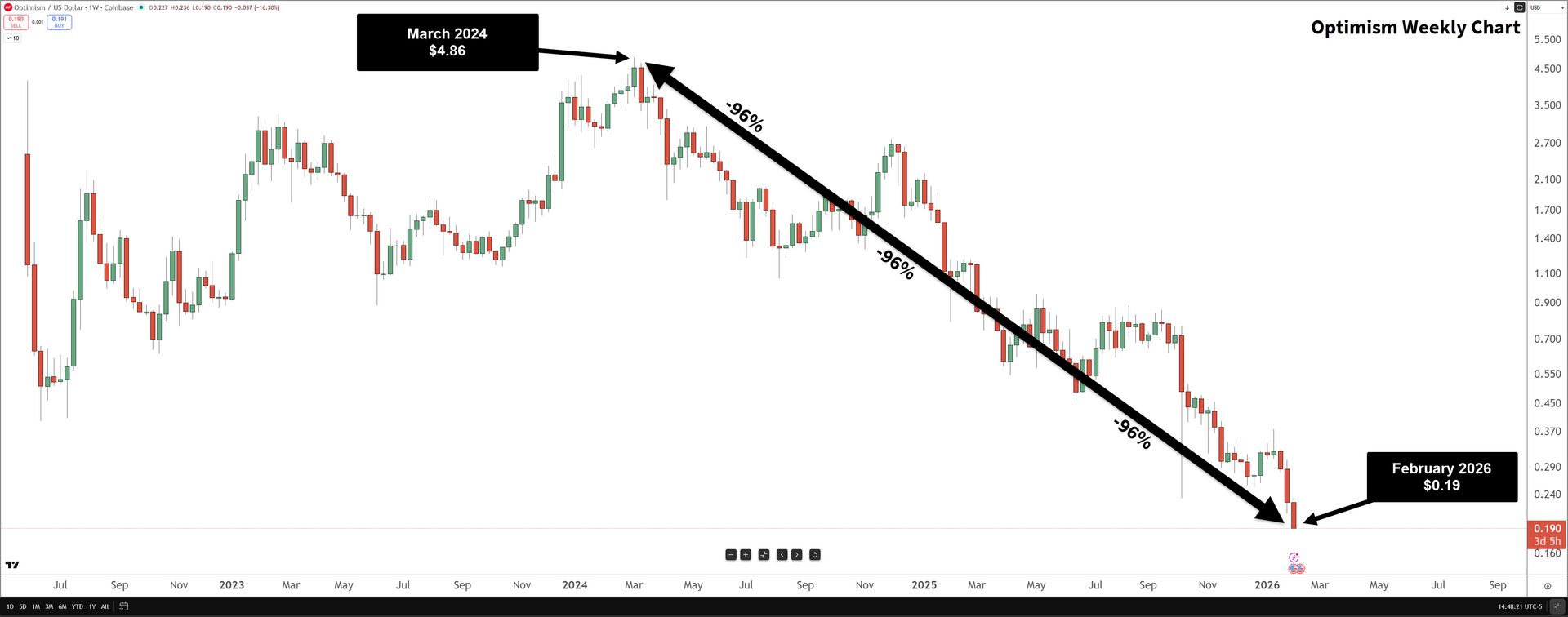 From it’s October 2025 high of $5.61, it’s collapsed a stupid amount: -81% to $1.07. I could go on, but I think you get the point: the L2s were dead long before Buterin started poking it with a stick. 💀