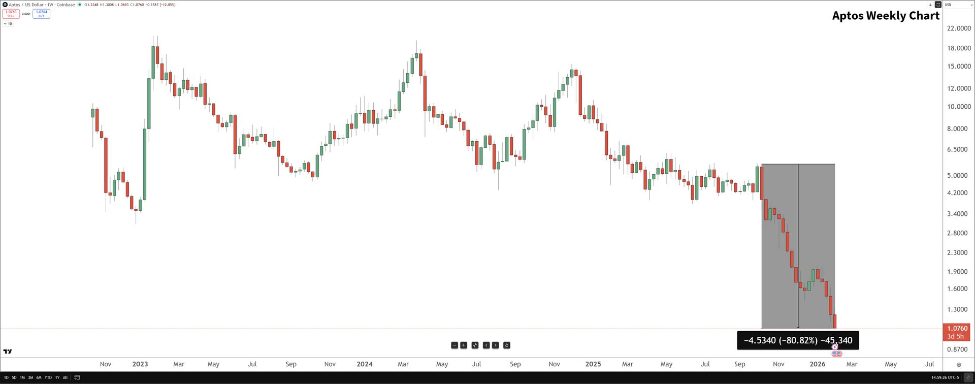 Officially the worst fraking named crypto in existance. This pink eye of a chart, at one point, was trading at $4.86 back in March 2024. Fast forward almost two years later and it’s down -96% to $0.19.