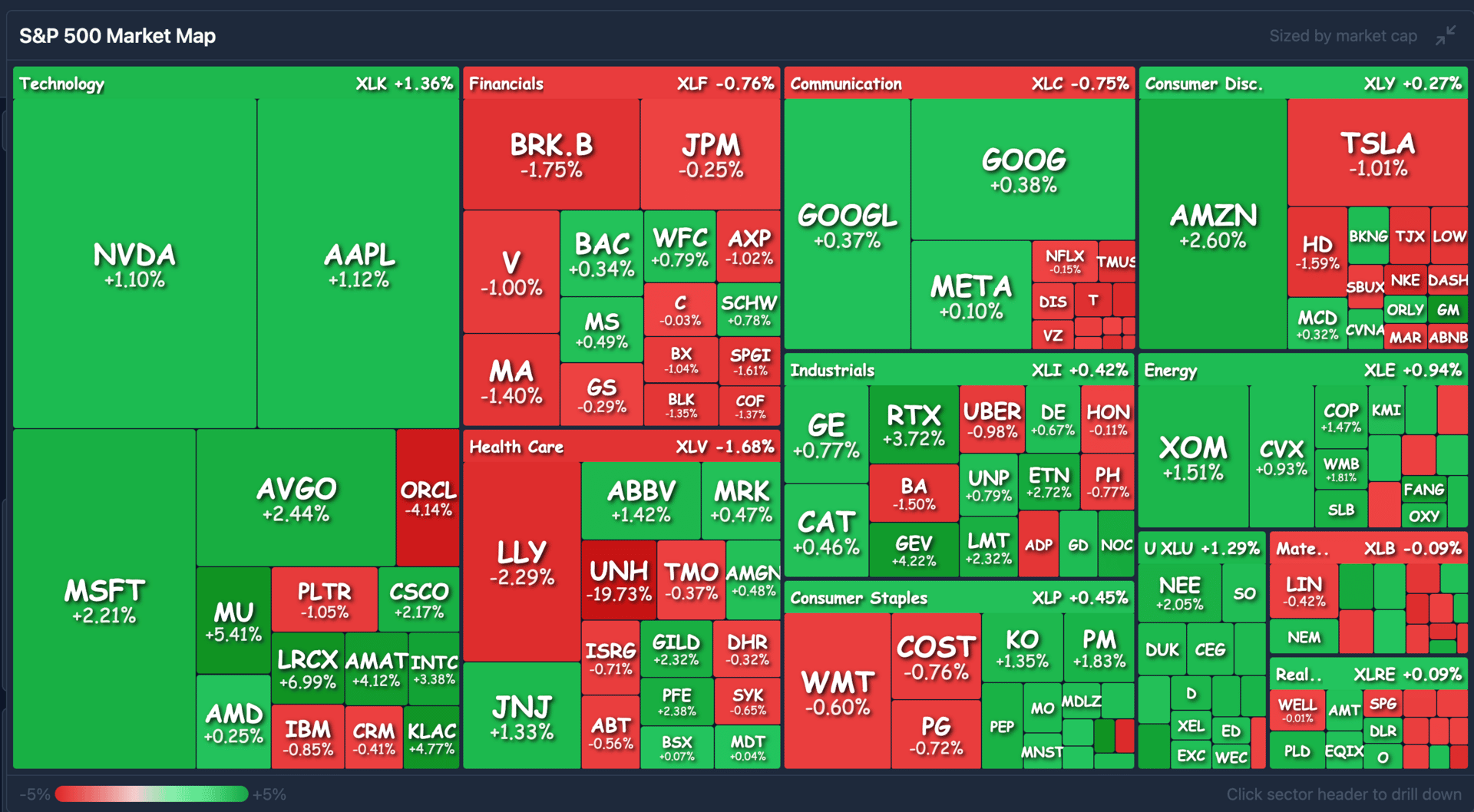 UnitedHealth is seeing a total bloodbath. The stock fell 19% after missing earnings and forecasting a revenue decline for 2026. The White House cut to next year’s Medicare spending increase also hit the entire sector, with Humana, Molina, and CVS all cratering over 10%.
