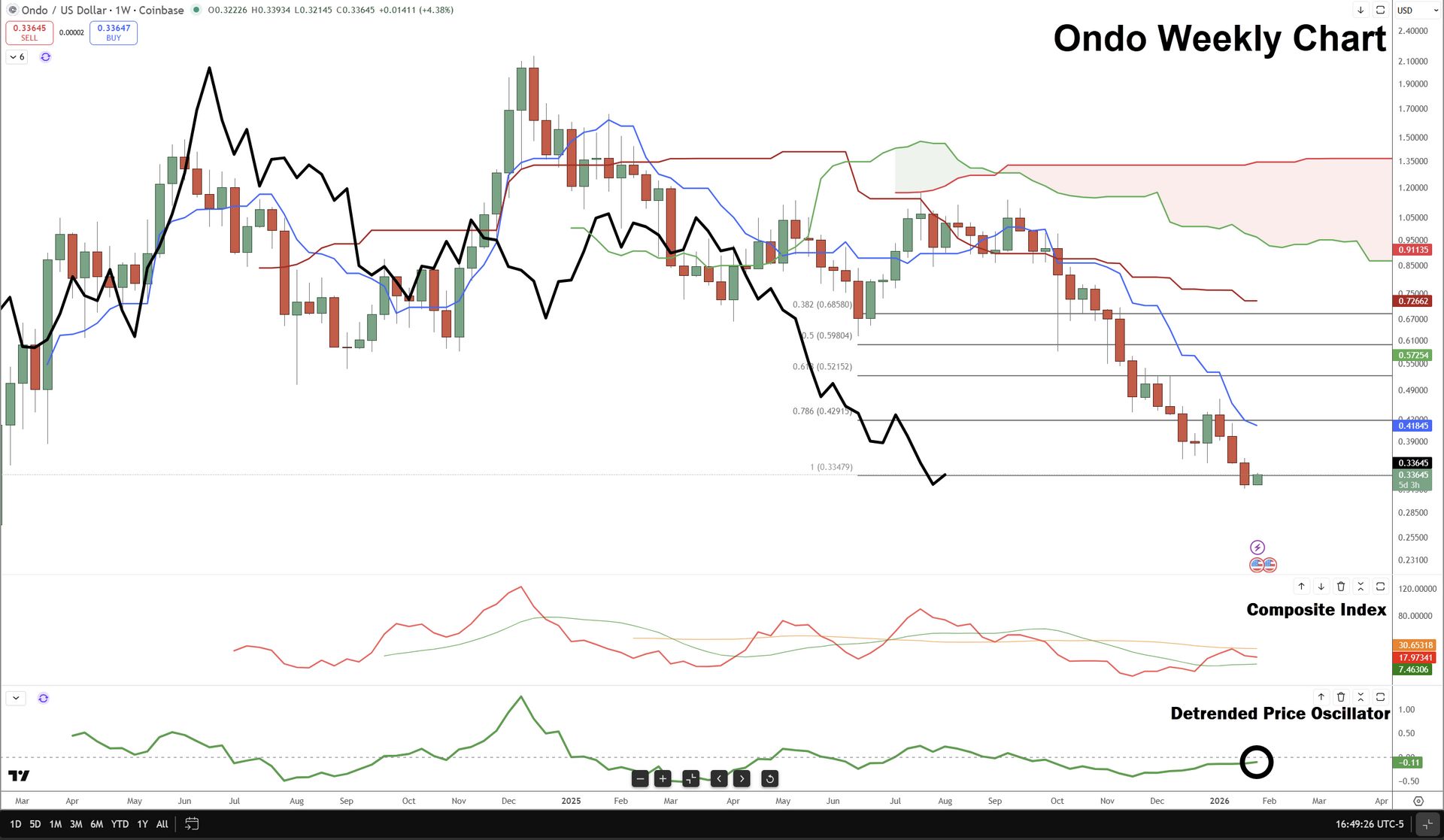 This is very similar to what we looked at with Avalanche. A close at or above $0.3347 would keep ONDO above the 100% Fibonacci extension and could provide enough of a boost to put the DPO above the zero line, triggering a nice jump higher. 🦘