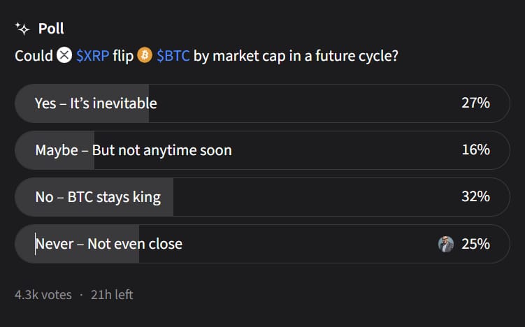Take This Poll: Could XRP Flip BTC In A Future Cycle? 👇️