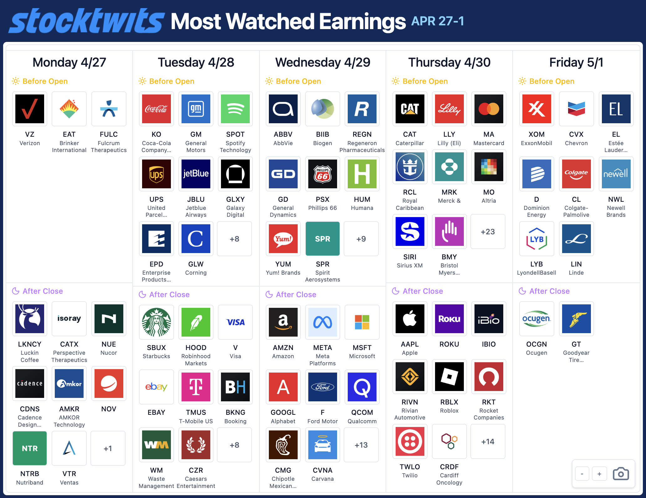 Above is a quick summary. Check out the full Stocktwits earnings calendar for the other names reporting this week.