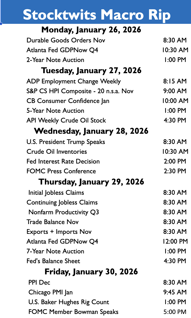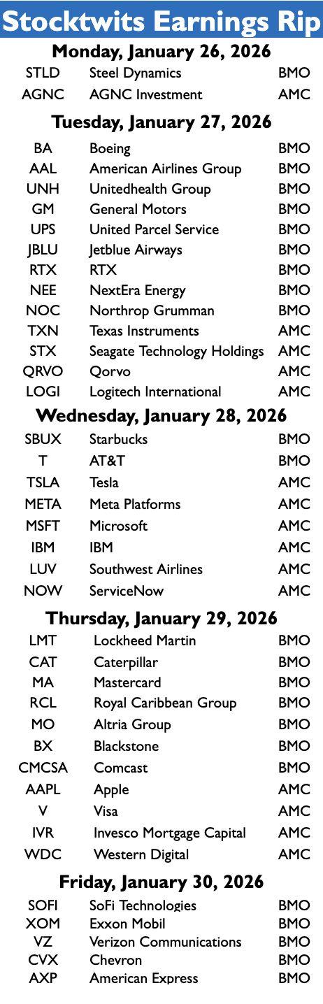 Saturday: This week’s Stocktwits Top 25 showed performance vs. the indexes. ICE agents tackled, shot and killed a nurse on the streets of Minnesota. A blizzard swept the United States.