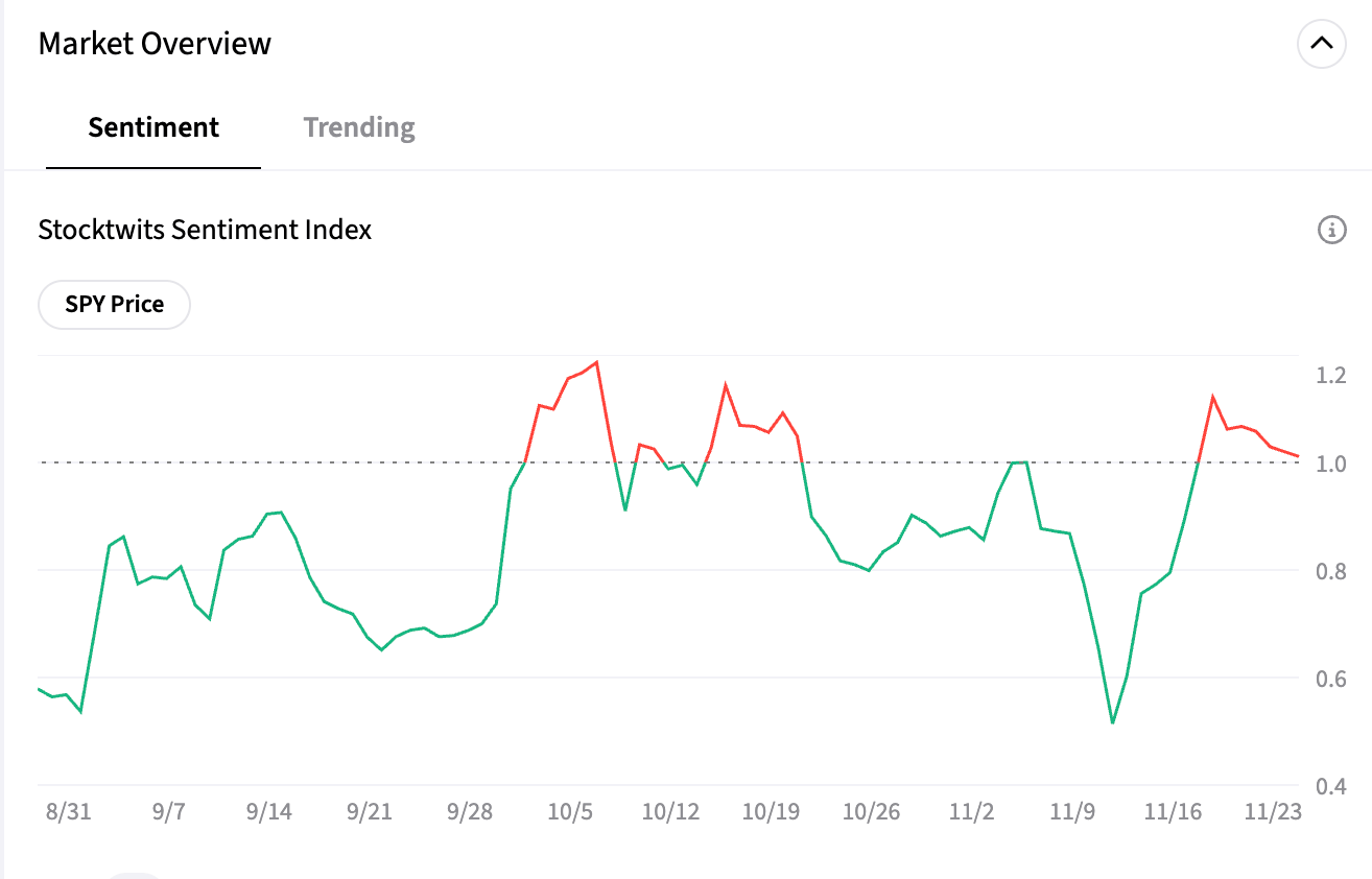 SPY Sentiment Index fear Peaks Near 1.2 Mid-November Then Fades